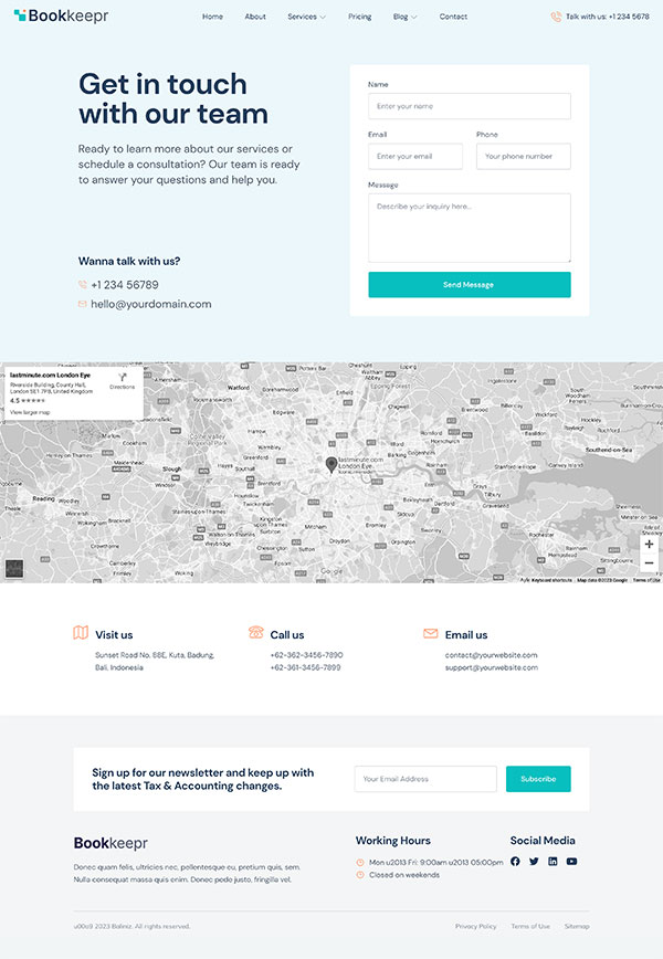 BookKeepr Business Website Design Code : BRO144 معاينة حية - جهاز كمبيوتر معاينة حية - جهاز لوحي معاينة حية - هاتف محمول صور التصميم المعاينة الحية لا تعمل؟ أعجبني هذا التصميم المعاينة لا تعمل. أصلحها لو سمحت. ارسال إذا أعجبك هذا التصميم وترغب في استخدامه في موقع الويب الخاص بك ، فيرجى ملء النموذج التالي مع ذكر رمز التصميم الموجود اعلى الصفحة اسفل اسم التصميم. وسأقوم بالتواصل معك فى أقرب وقت. Please enable JavaScript in your browser to complete this form.الاسم *هاتف/ محمولالبريد الالكتروني *كود التصميمMessage *ارسال