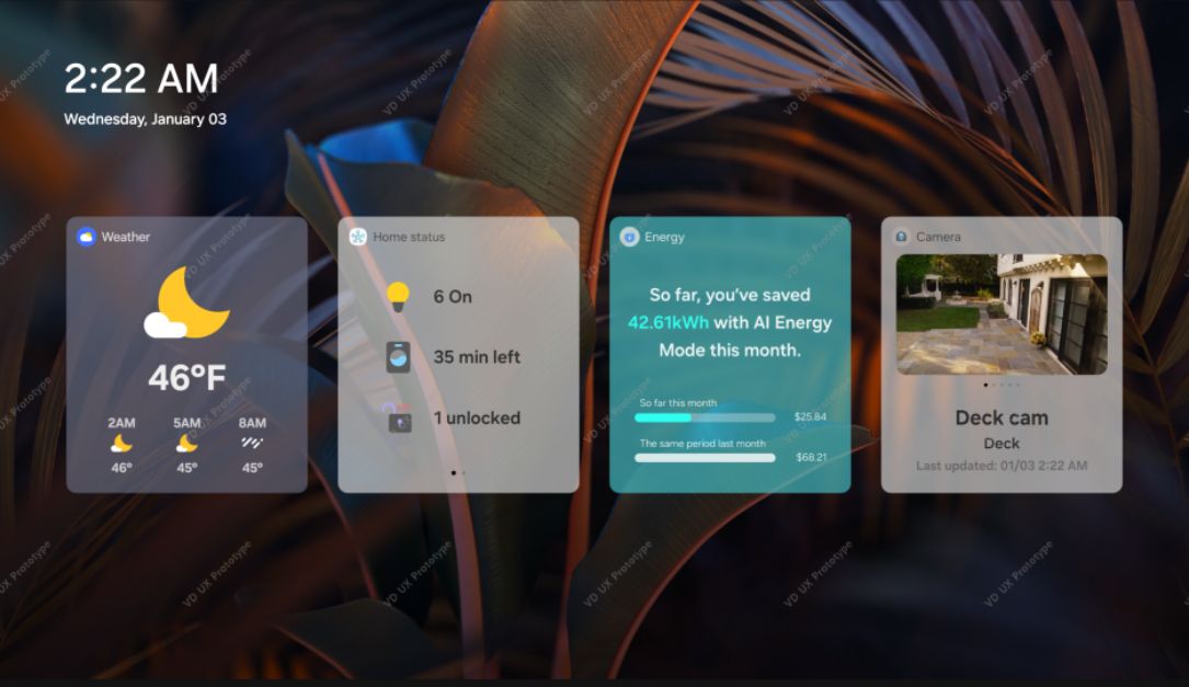 ويمكن أيضًا عرض موجز كاميرات المنزل ودرجة الحرارة والوقت المتبقي في دورة الغسيل، وذلك في حالة وجود الأجهزة المتوافقة.
