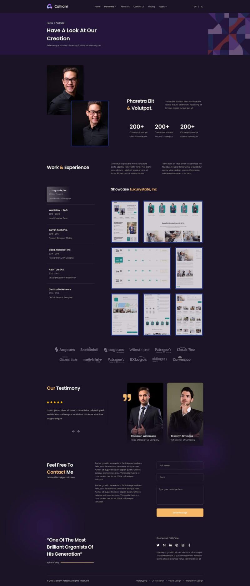 Calliam Category : Brochure Websites Design Code : BRO0071 Desktop Live Demo Tablet Live Demo Mobile Live Demo Design Gallery Demo Is Not Working? I Like This Design This demo is not working, Please fix! Send If you like this Design and want to use it in your website, Please fill the following form with the design code. Please enable JavaScript in your browser to complete this form.Name *Phone/ MobileEmail *Design CodeMessage *Send